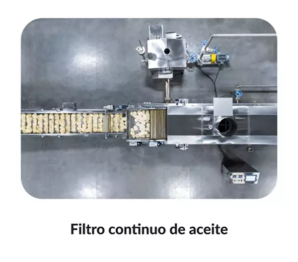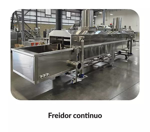 El corazón de la línea es un freidor continuo de propelas y bandas, con calentamiento indirecto y control total mediante PLC, ideal para productos con alto contenido de humedad. Este diseño asegura expansión uniforme, textura crujiente y control preciso del perfil de fritura. Construida bajo estándares industriales robustos, la línea permite operación continua, bajo consumo energético y mínima intervención del operador, ofreciendo confiabilidad, estabilidad de proceso y excelente rentabilidad.